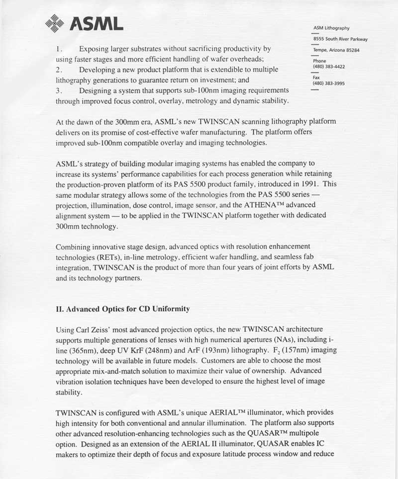 ASML - Twinscan, Step & Scan Aligner